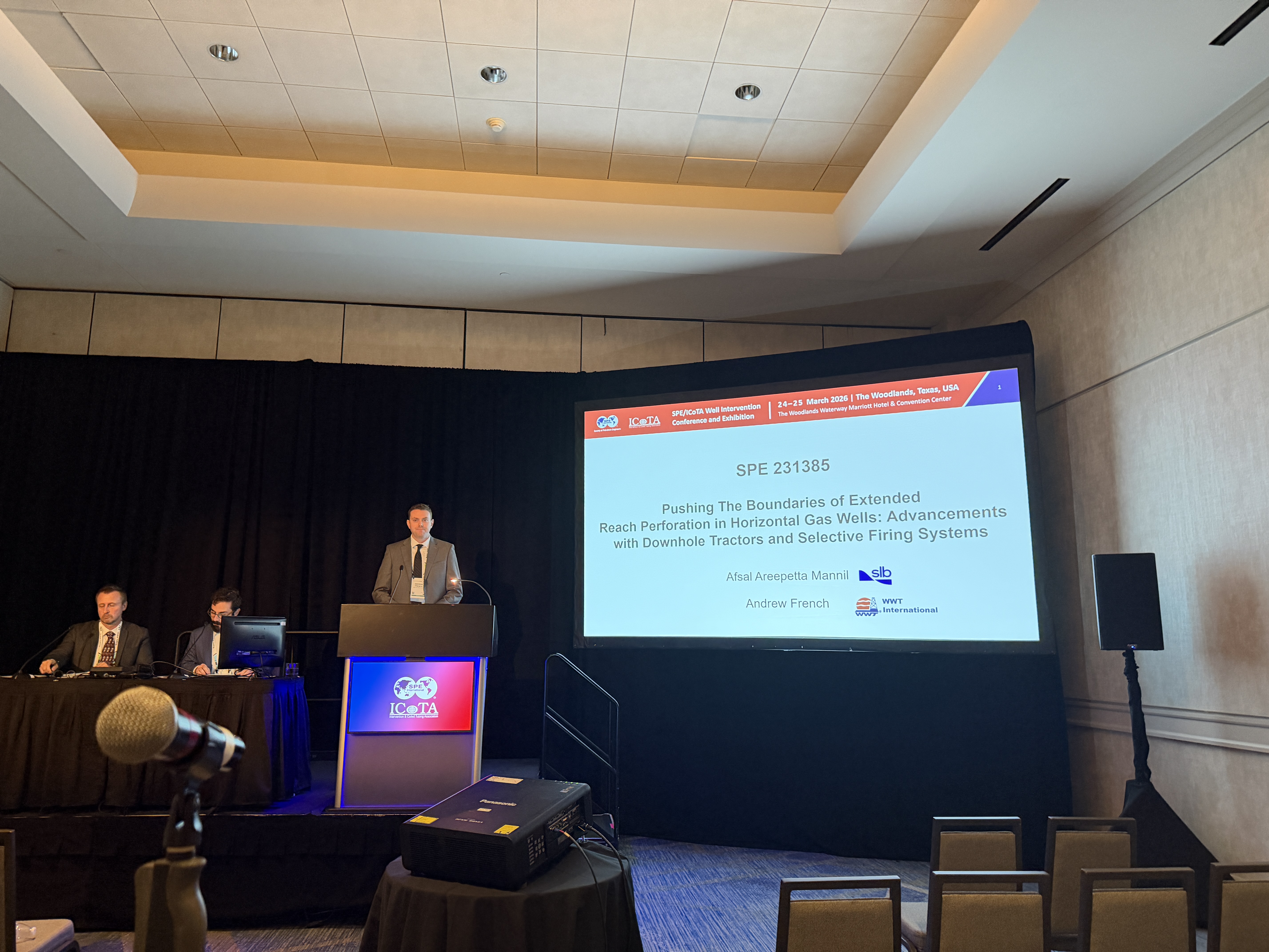 Day one saw strong engagement, with the team connecting with agents, operators, and industry peers while showcasing their advanced coiled tubing tractor technology. Discussions focused on improving well intervention efficiency, extended reach capabilities, downhole conveyance, and overall drilling and completion performance in challenging well environments. A highlight of the day was a technical presentation by Andrew French, titled “Light Well Intervention (LWI): Maximum Impact, Minimal Footprint,” which explored innovative approaches to delivering effective intervention with reduced operational footprint.