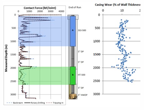 An operator drilling re-entry wells had a concern of casing wear due to corrosion and also additional drill pipe revolutions while sidetracking. Milling the cased-hole window using a whipstock required approximately 80 hours of rotation on the existing casing and 550 kg (1,210 lb) of metal swarf was recovered at the surface. Once a liner was run through the sidetrack point, the abrupt deviation created high contact forces thus creating concern for casing wear.