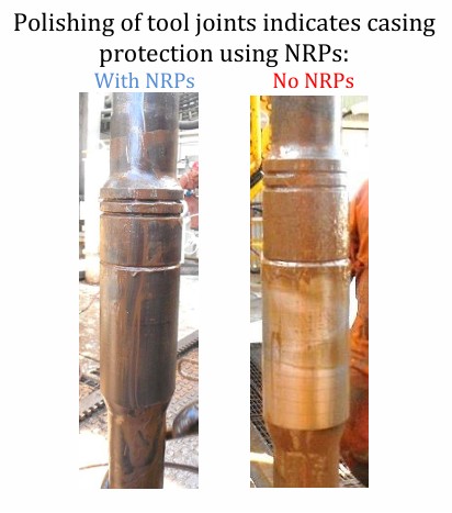 WWT Non-Rotating Protectors (NRPs) installed 1.4m (4.6ft) above the tool joint connection created stand-off between the drill pipe and casing. NRPs were installed 1/stand where side forces exceeded 2,500 lbs/jt in the vertical section of the wellbore. Tool joints adjacent to the installed NRPs remained unpolished, indicating successful tool joint standoff.